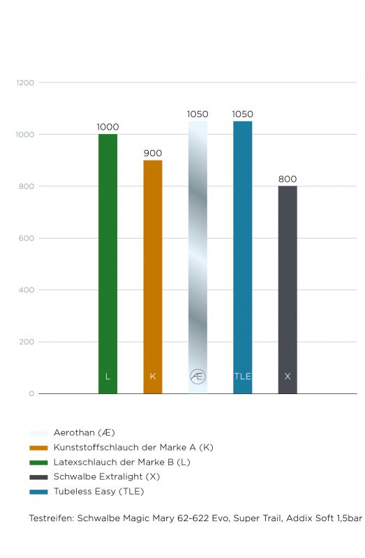 Der Schwalbe Aerothan Tube MTB+ mit noch mehr Volumen ist gegen Snakebites ebenso pannenresistent wie gegen Seitenwandschäden – dafür sorgt die extreme Robustheit des Materials.Beim Cross-Country- und Marathon-Einsatz spielen das erstaunlich geringe Gewicht und der niedrige Rollwiderstand ihre Vorteile aus. Selbst auf anspruchsvollen Trails lässt dich dieser Schlauch niemals im Stich: Weil der Aerothan Tube MTB auch bei niedrigen Luftdrücken extrem formstabil bleibt, hast du dein Bike jederzeit zuverlässig im Griff.